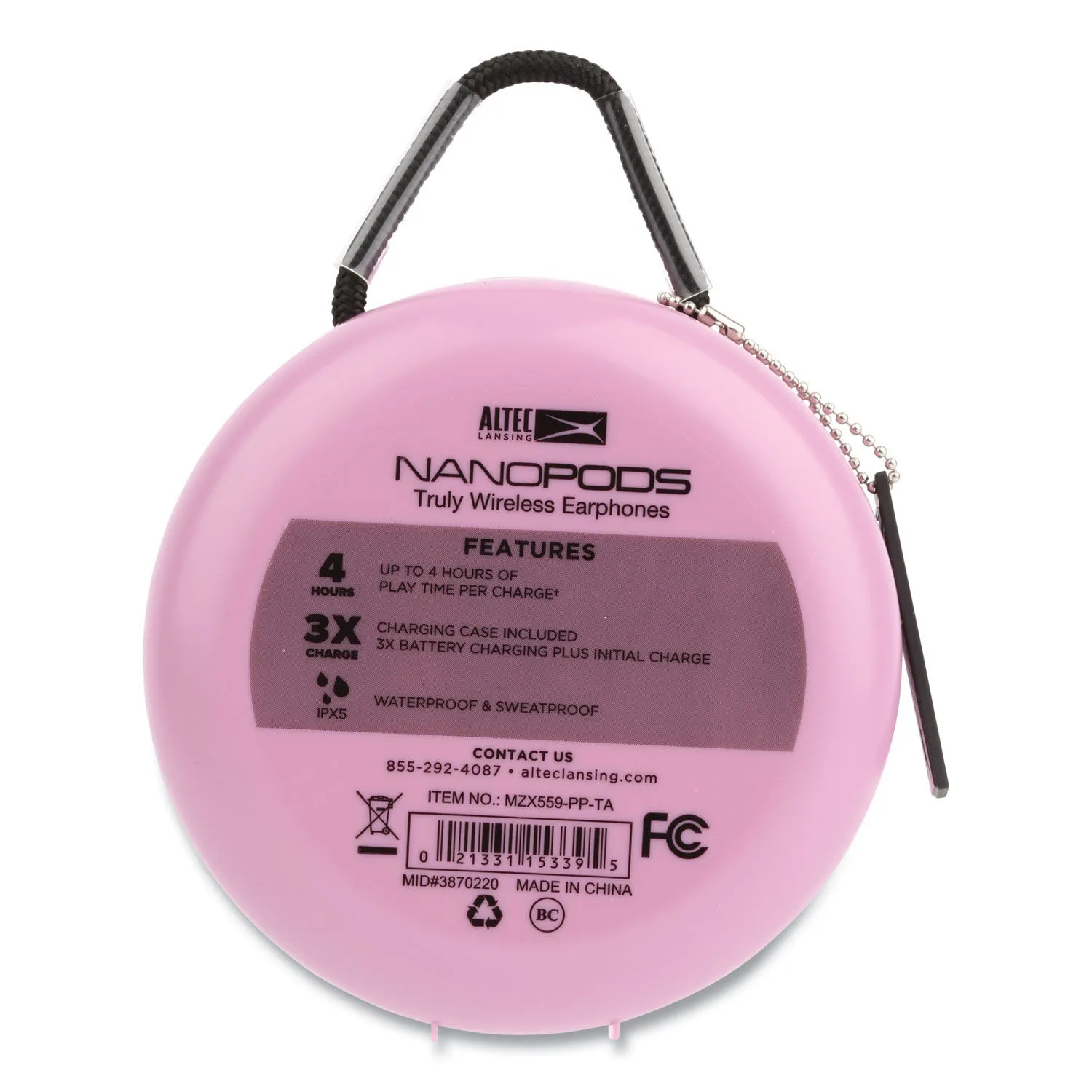 NanoPods are truly wireless which means you don’t have to worry about being tied down by wires while on the go. Enjoy the freedom to listen to music, manage calls and more with a 50 ft Bluetooth® wireless range. Perfectly sized to fit in your pocket, purse, clutch or backpack. With an IPX5 water-resistant rating, these earbuds can outlast the elements. Automatic power on and automatic pairing make them super easy to use. The NanoPods have a 4-hour battery life with an additional four charges within the portable charging case.