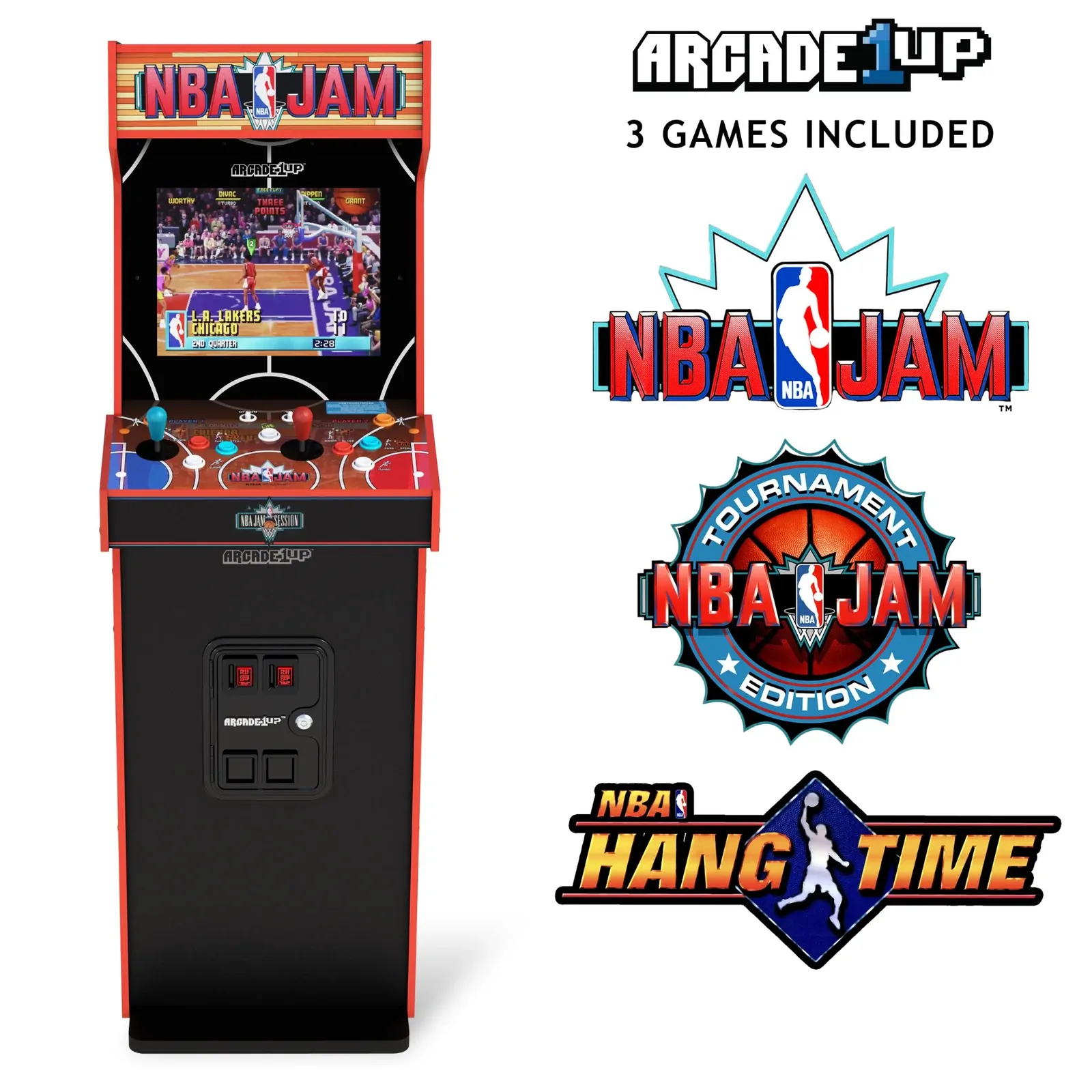 Step onto the court and experience the ultimate slam-dunk of nostalgia with the Arcade1Up NBA JAM 2-Player Deluxe Arcade Machine! Prepare for an adrenaline-fueled journey through hoops history as you relive the glory days of arcade gaming. With NBA JAM, NBA JAM TOURNAMENT EDITION, and NBA HANGTIME all packed into one sleek cabinet, the action never stops.