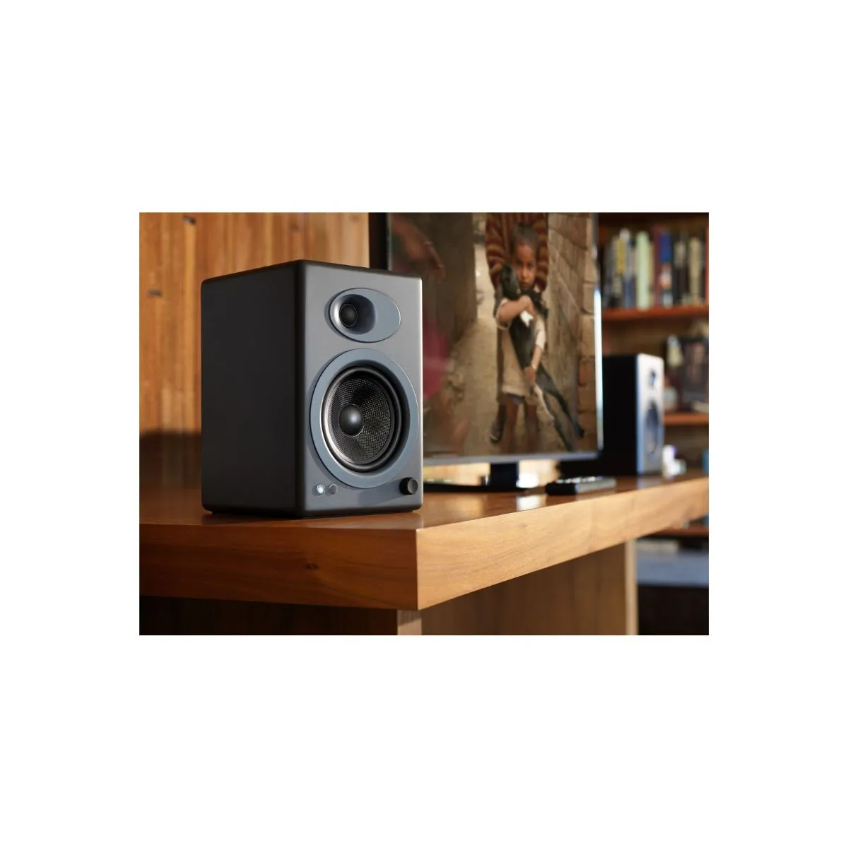 The A5+ Powered Speakers are bookshelf speakers that pack a big sound, filling any room. No network setup, passwords to enter, or buttons to push.  Setting them up is so easy you’ll be rocking in no time.