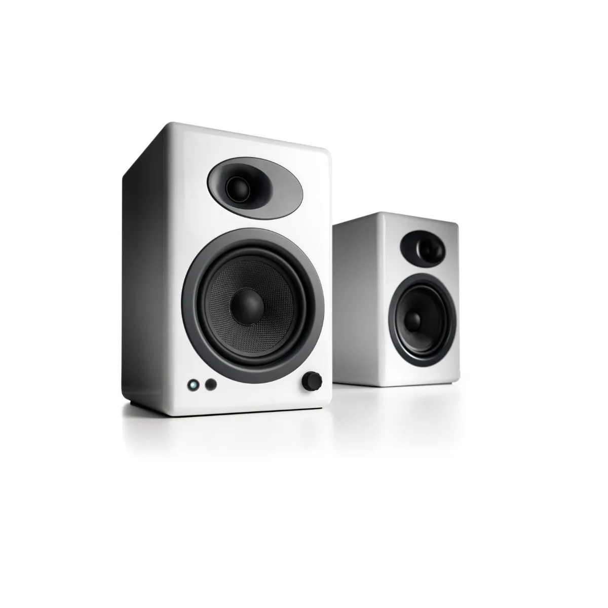 The A5+ powered speakers are premium bookshelf speakers with big, bold stereo sound that fills any room. We didn’t invent the powered speaker, but we made it sound great.