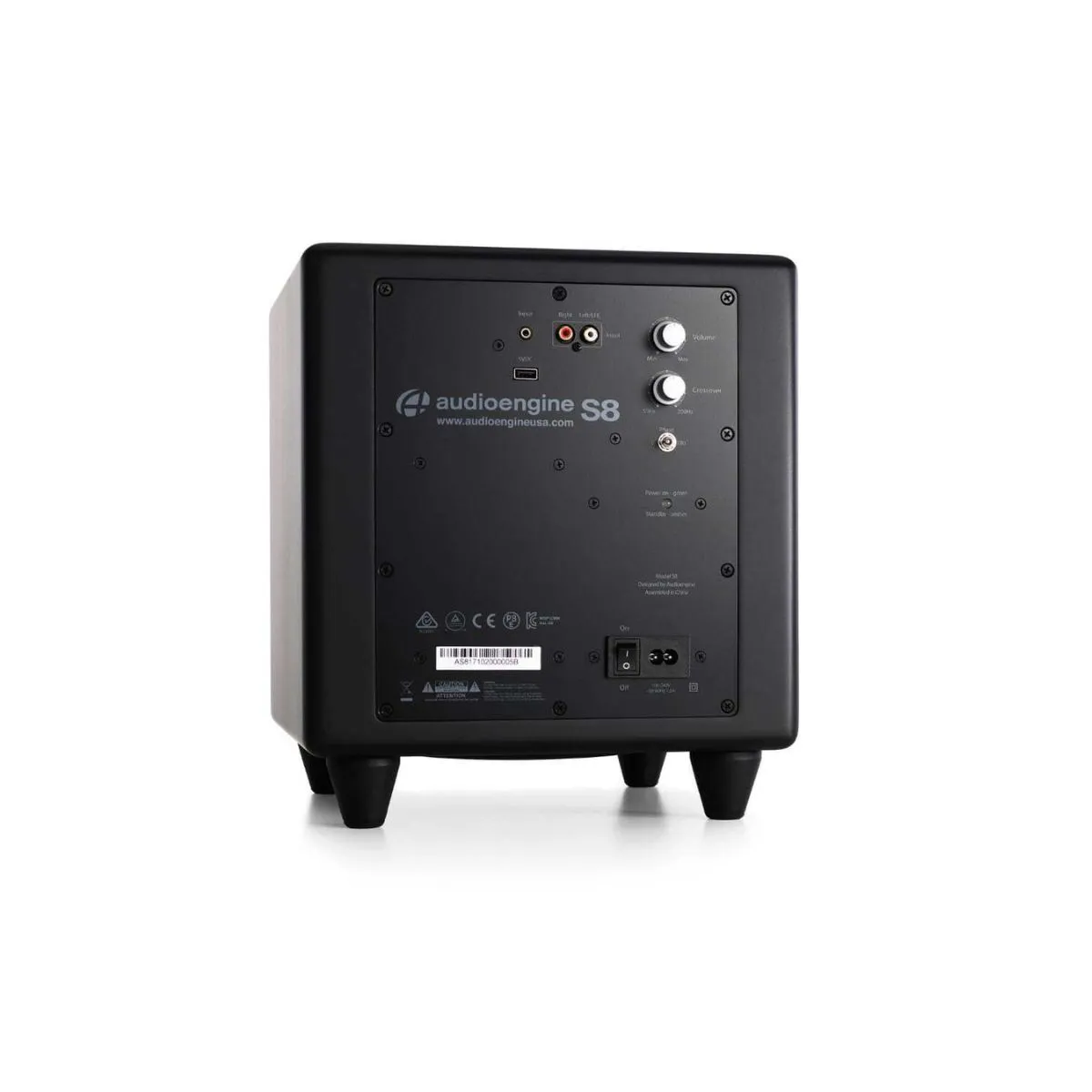 Dual audio inputs are included on the rear panel so connecting S8 to all your gear is easy.An auto-sleep standby feature turns the S8 Subwoofer off when you’re not playing music.