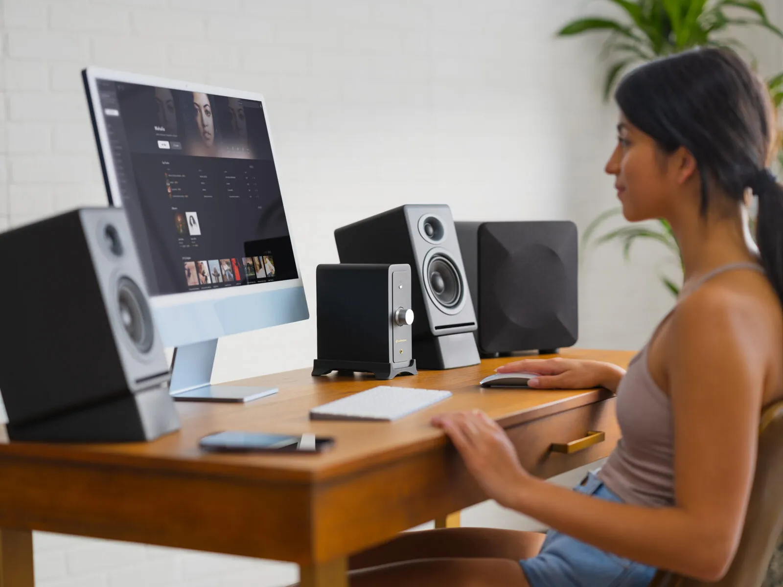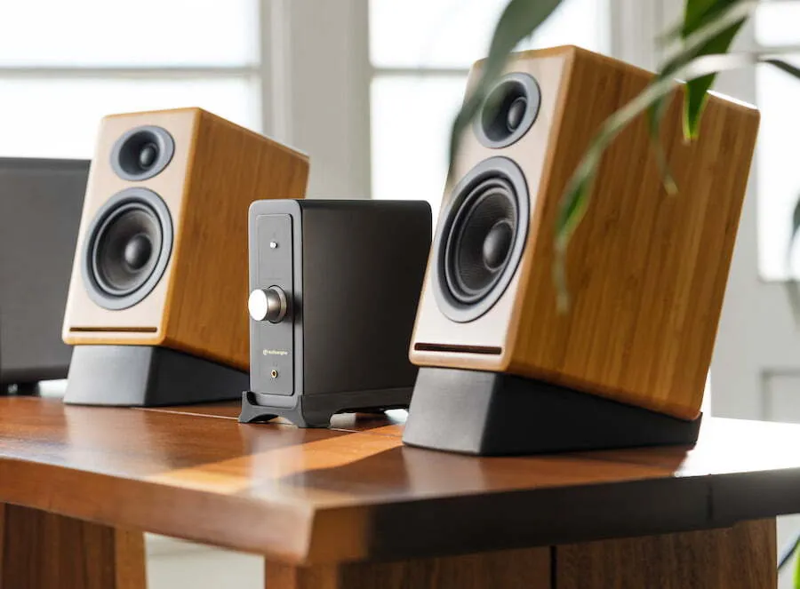 N22 is a compact stereo-powered desktop and high-quality headphone amplifier with multiple inputs including (Bluetooth, USB-C, and Analog). Connect passive speakers, a subwoofer, or your favorite headphones to your phone, computer, turntable, DAC, or streaming device for a mini hi-fi music system.
