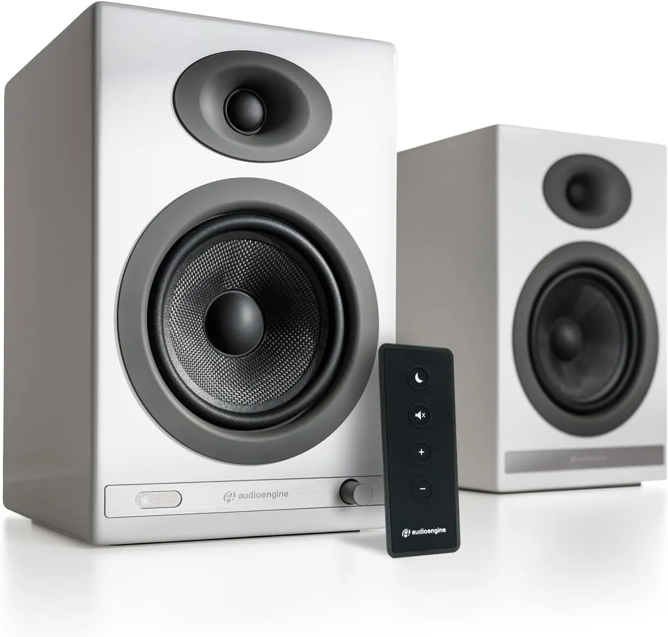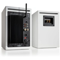 • INCREDIBLE CLARITY - The 24 Bit 150 watt wireless bookshelf speakers deliver high-fidelity true stereo sound. Comes with optical, 3.5mm analog and RCA input options, 5 inch aramid fiber woofers and .75 inch silk dome tweeters with magnetic grille