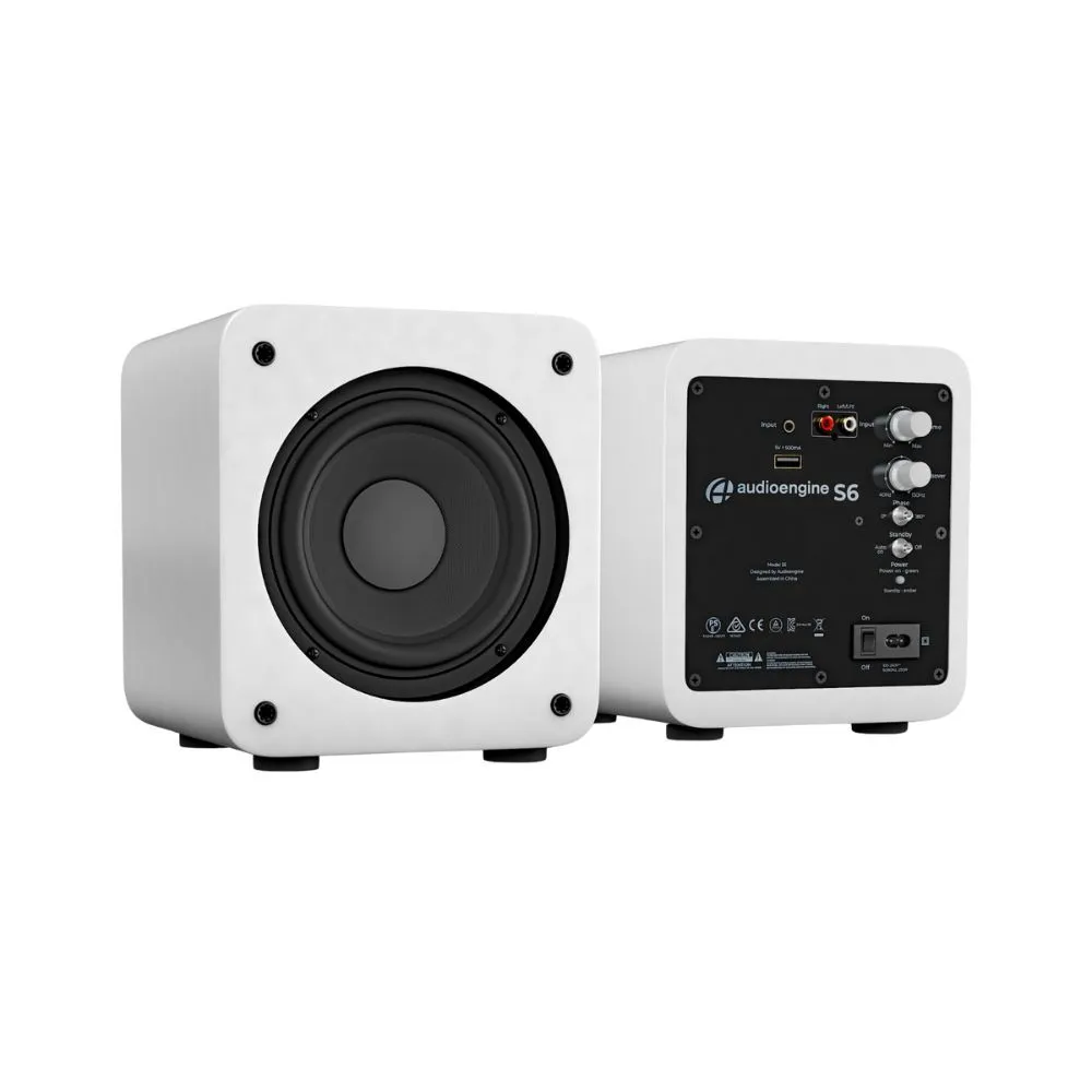 The Audioengine S6 sets a new standard in performance to size. With 210 watts of power in a small package that fits almost anywhere, the S6 is the ultimate bass extension for your desktop, home theatre or gaming setup. With a front-firing woofer in a sealed box, The S6 delivers deep, smooth, and punchy bass that defies expectations.