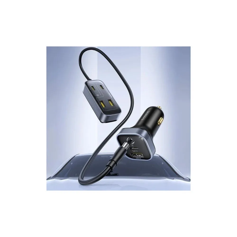 BASEUS Backseatpal L1 In-Vehicle Cigarette Lighter Car Charger 3 USB + 3 Type-C Power Strip - Black