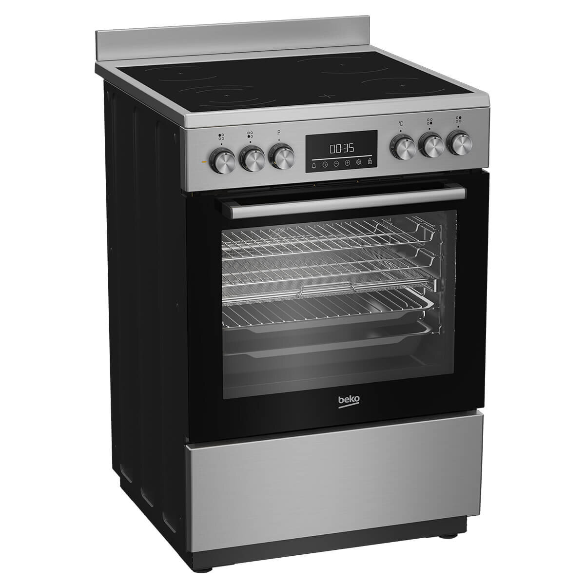 Designed for everyday cooks and growing families, the Beko Electric Freestanding Oven With Ceramic Cooktop brings together flexible cooking technology and convenient features in a classic 60?cm freestanding form. Its vitroceramic cooktop offers four radiant cooking zones, giving you space to simmer, boil, sauté or sear across multiple pans, all on a surface that’s sleek, responsive and easy to maintain.