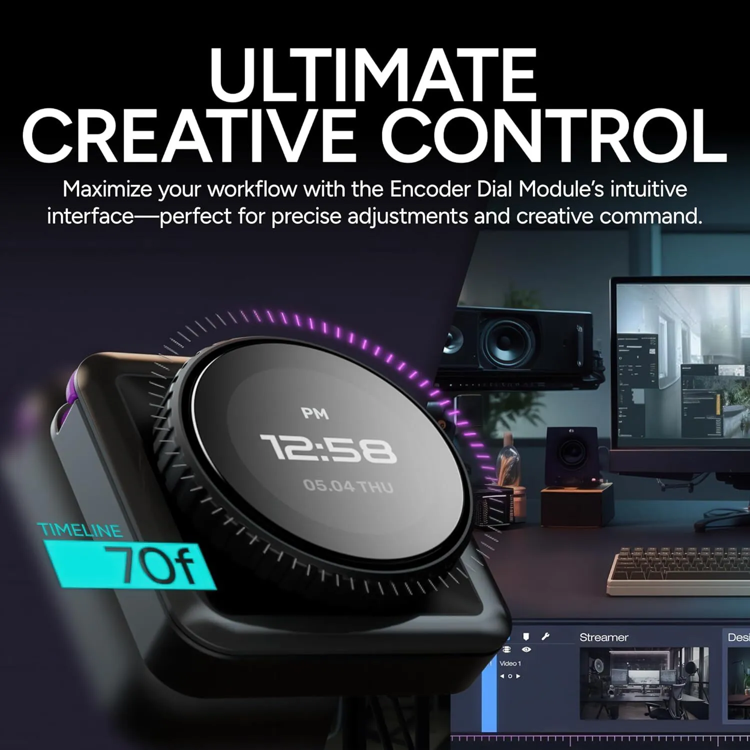 Effortlessly adjust brush sizes, zoom, rotate, scroll, or fine-tune colours with pinpoint accuracy. Perfect for video editors, designers, and live streamers, this module brings ultimate creative control to your fingertips. With customisable widgets such as a clock, timer, or weather, you can tailor your setup for both productivity and style.