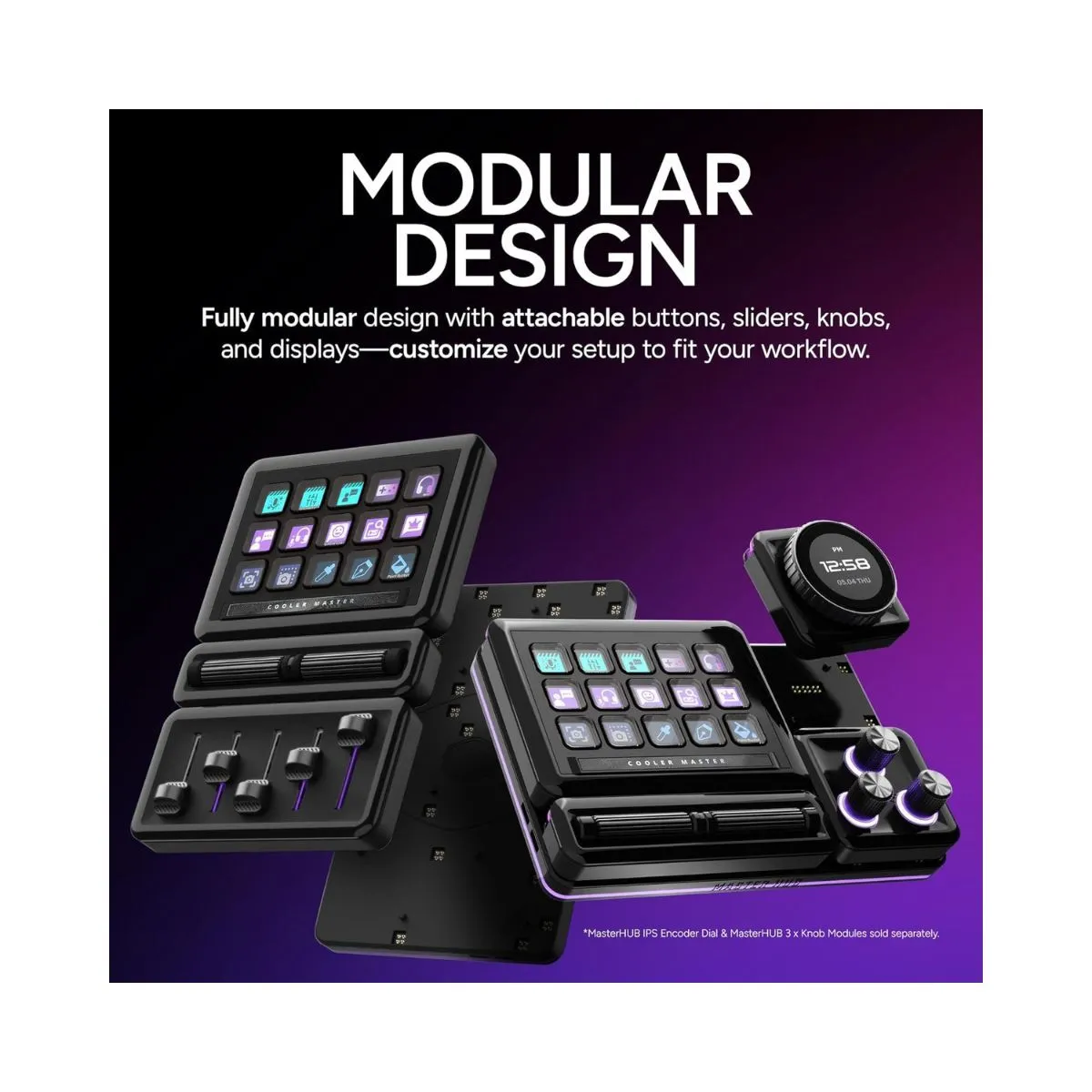 Unlock your full creative potential with the Cooler Master MasterHUB Creator Kit, a next-generation FreeForm 2.0 Modular Platform designed for total control and flexibility. Featuring a powerful Base Unit, 15-Key IPS Display Module, 5xFader Module, and 2xRoller Module, this kit delivers a tailored experience for streamers, content creators, video editors, and gamers.