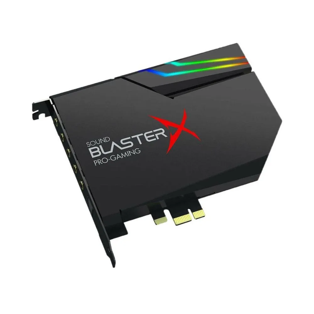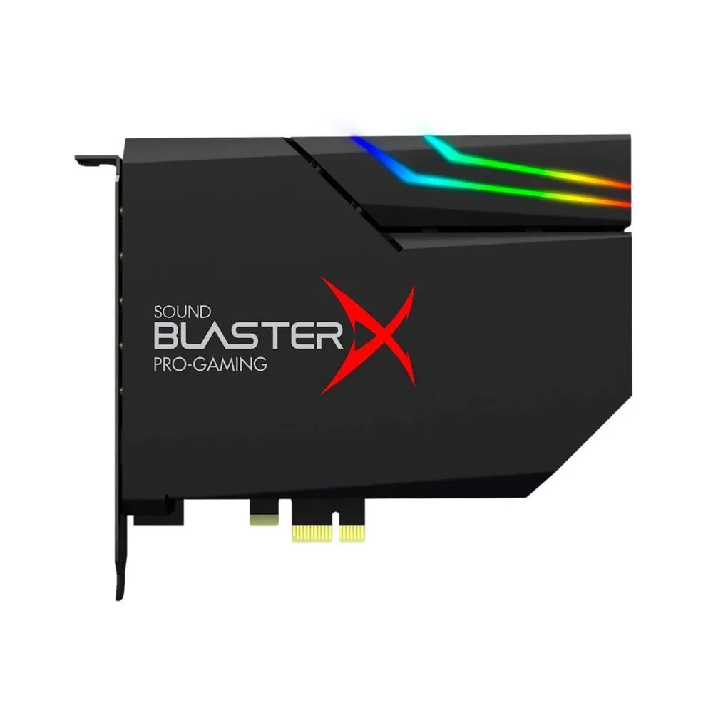 The Creative Sound BlasterX AE-5 Plus is a SABRE ultra-class hi-res PCIe gaming sound card and DAC with customizable RGB LEDs on its body, and comes with an included RGB LED strip. It has also been built with an Xamp discrete headphone amp that uses bi-amplification technology, as well as a full suite of audio processing technologies, including Surround Virtualization.