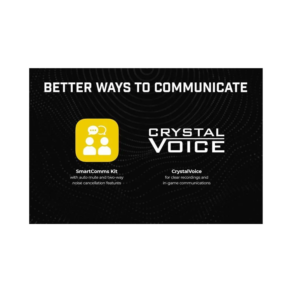• SmartComms Kit with auto mute and two-way noise cancellation features, CrystalVoice for clear recordings and in-game communications