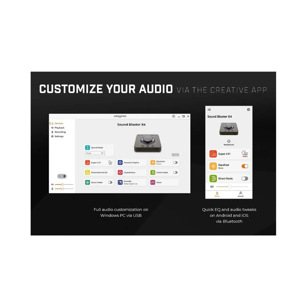 • Full audio customization on Windows PC or Intel-based Mac systems via USB, Quick EQ and audio tweaks on Android and iOS via Bluetooth