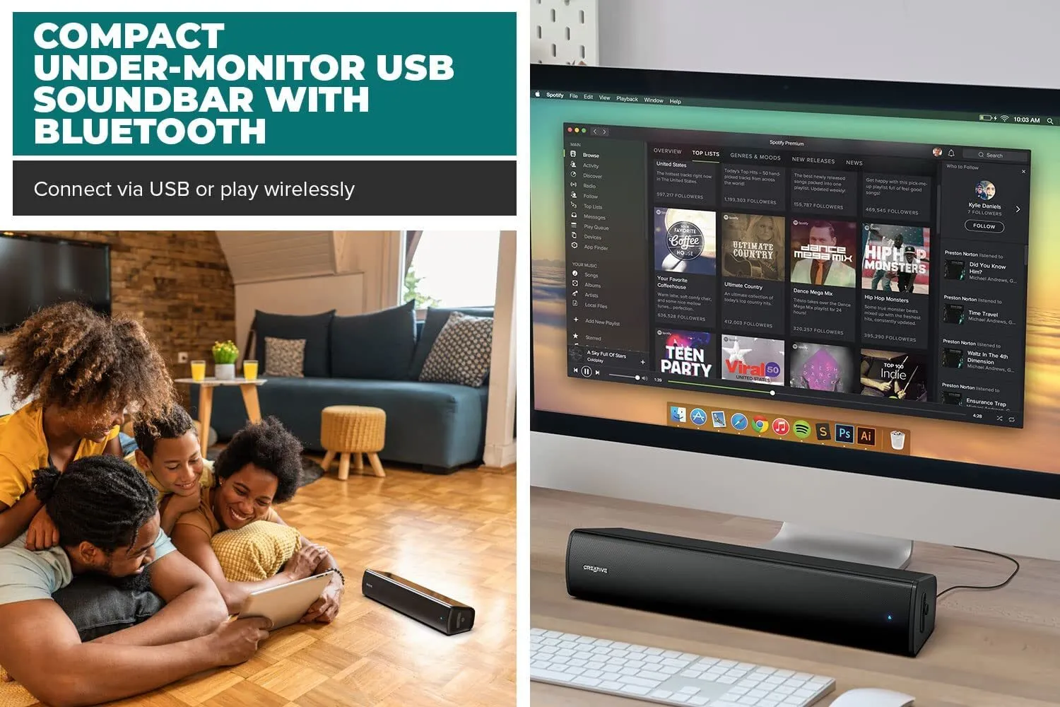 PORTABLE WITH LONG BATTERY LIFE - With a playtime of up to 6 hours on a single charge, bring the Creative Stage Air V2 around with you easily, whether you're fixing up your car in the garage or cooking up a storm in the kitchen, enjoy great audio entertainment just about anywhere at home without being tethered to a power source