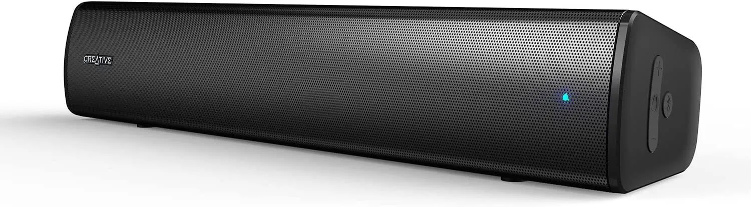 SLEEK AND COMPACT SOUNDBAR FOR YOUR PC - Measuring at only 410 x 94 x 75 mm / 16.1 x 3.7 x 2.9 inches, the soundbar fits snuggly under the monitor, and is also compact enough to be carried around the house. Featuring a minimalistic design, the Creative Stage Air V2 can fit right into any desktop setting without visible clutter
