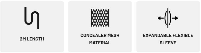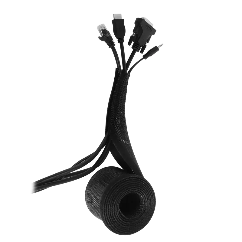 Material: Flexible mesh sleeve to wrap around and organise cables