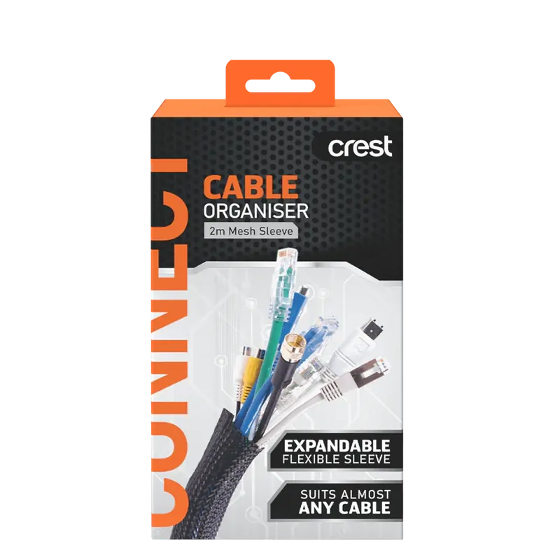 Safeguard and organise your dangling cords with the Crest Cable Organiser Concealer Mesh Sleeve. Its flexible and durable design ensures easy installation thanks to the convenient hook and loop backing and 2 metre length.