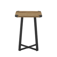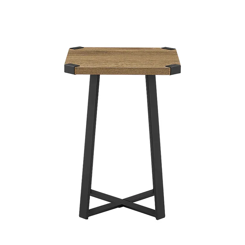 This Criterion Capri End Table is a sophisticated, modern statement piece for any living space. The square table top is supported by a black metal leg frame, and features metal edge highlights for an elegant touch. Finished in dark oak, it's a timeless, classic design that is sure to last. Enjoy peace of mind with a 12 month warranty.