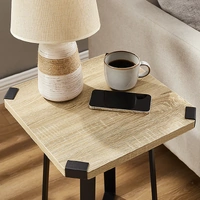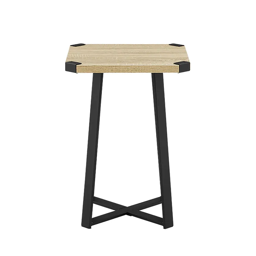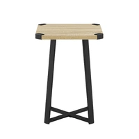 This Criterion Capri End Table is a sophisticated, modern statement piece for any living space. The square table top is supported by a black metal leg frame, and features metal edge highlights for an elegant touch. Finished in oak, it's a timeless, classic design that is sure to last. Enjoy peace of mind with a 12 month warranty.