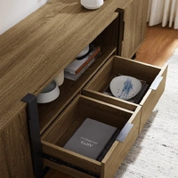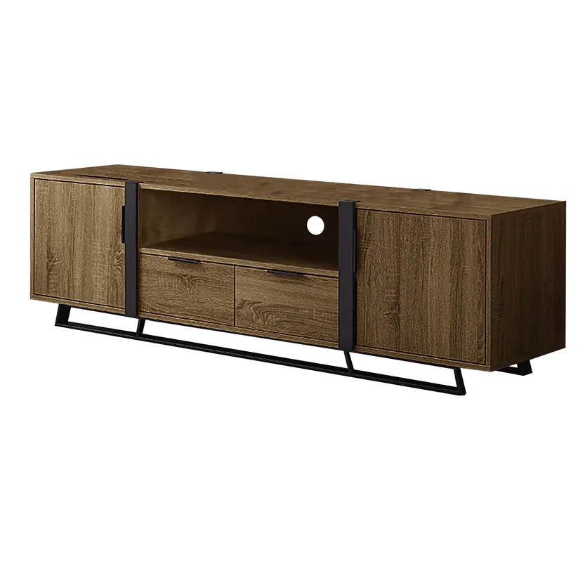 The Criterion Capri Entertainment Center is a stylish and functional piece of furniture. Offering one component space or sound bar space, cable management, two drawer fronts with metal handles, and ball bearing drawer runners, it makes managing and storing your entertainment accessories simple and hassle-free. With its dark oak cabinet, black metal frame and highlight panels, it brings a luxurious touch to any living or entertainment area.