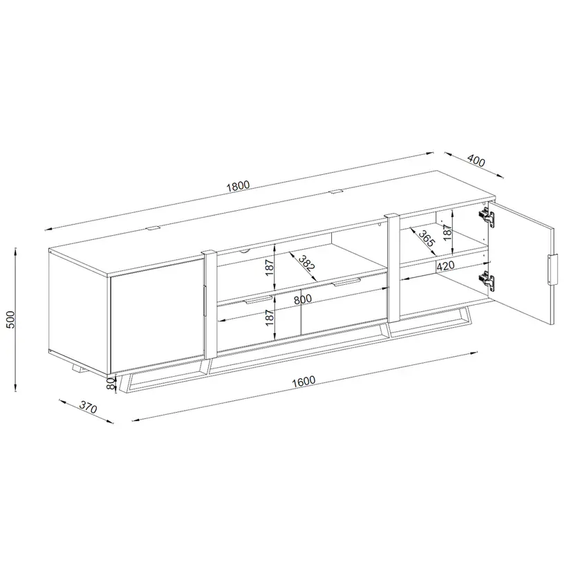 Interior Component Space: 800(W) x 382(D) x 187(H) mm