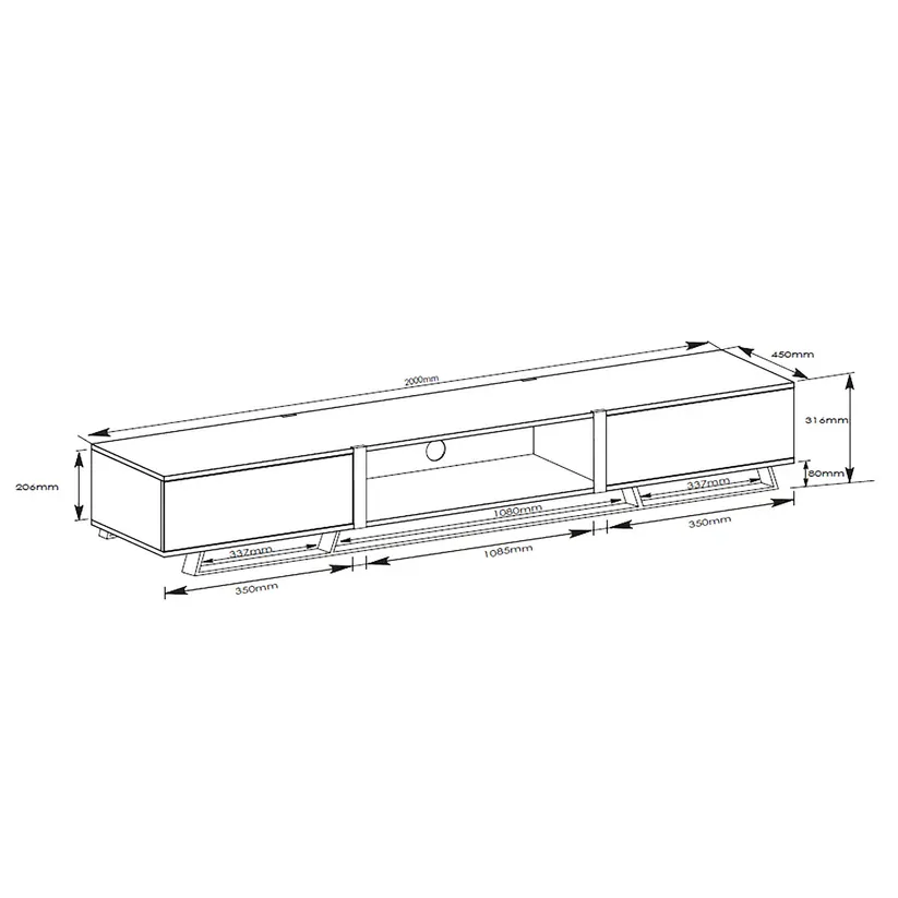 Unit Built Dimensions: 2000(W) x 450(D) x 316(H) mm