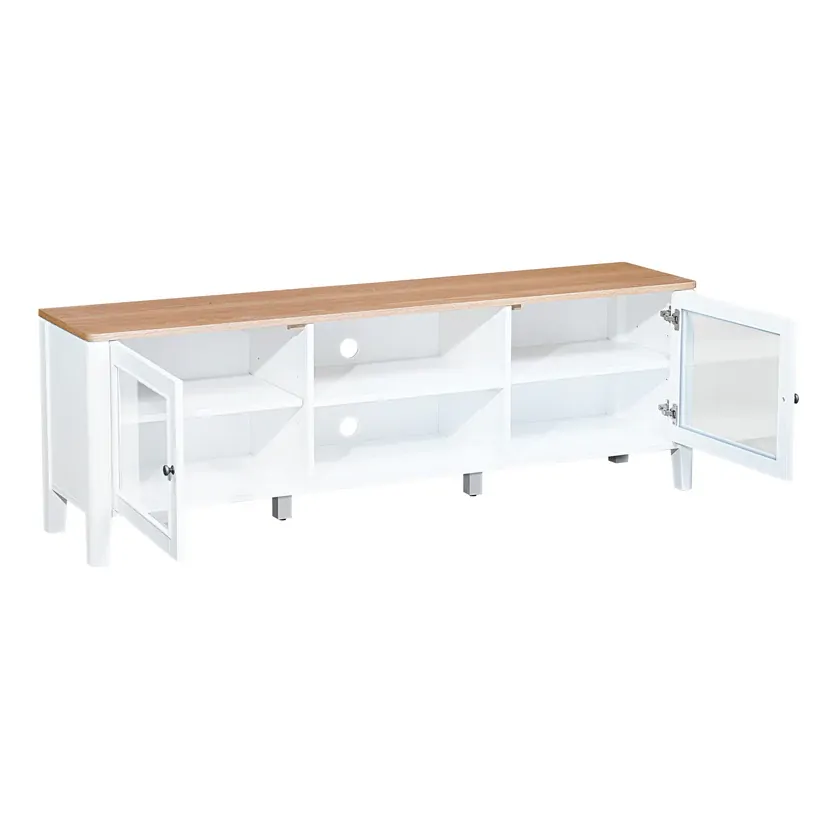 Indulge in luxury and sophistication with the Criterion Sorrento Entertainment Unit. Made from real white oak wood veneer and solid MDF construction, this semi-assembled unit boasts a natural finish top and sleek white cabinet. The two open shelves and two doors with internal storage provide ample space for all your entertainment needs. With an anti-tip kit supplied and a 12 month warranty, this unit offers both style and functionality.