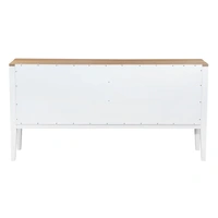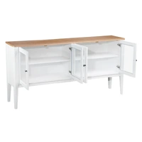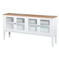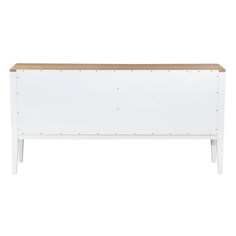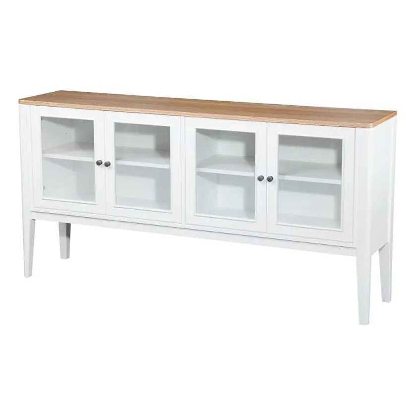 Introducing the Criterion Sorrento Buffet. This luxurious piece features a real white oak veneer and a natural finish top, perfect for any elegant living space. With a white cabinet, solid MDF construction, and KD Hevea wood legs, it exudes sophistication. The four tempered glass doors with metal handles provide a peek into the four internal shelves. Semi-assembled and anti-tip kit supplied. Includes 12 month warranty.