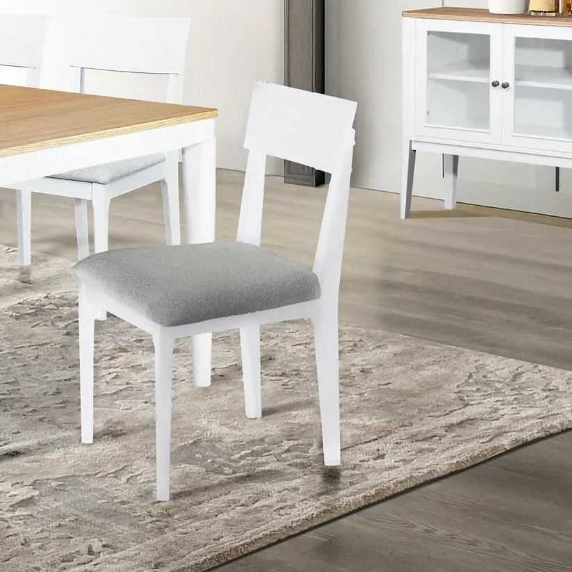The Criterion Sorrento dining chair exudes elegance with its real white oak wood veneer and painted white finish. Its solid MDF box seat construction, KD hevea wood legs and back, and durable foam and fabric seat ensure both style and comfort. Comes in a pair, with a 12 month warranty.