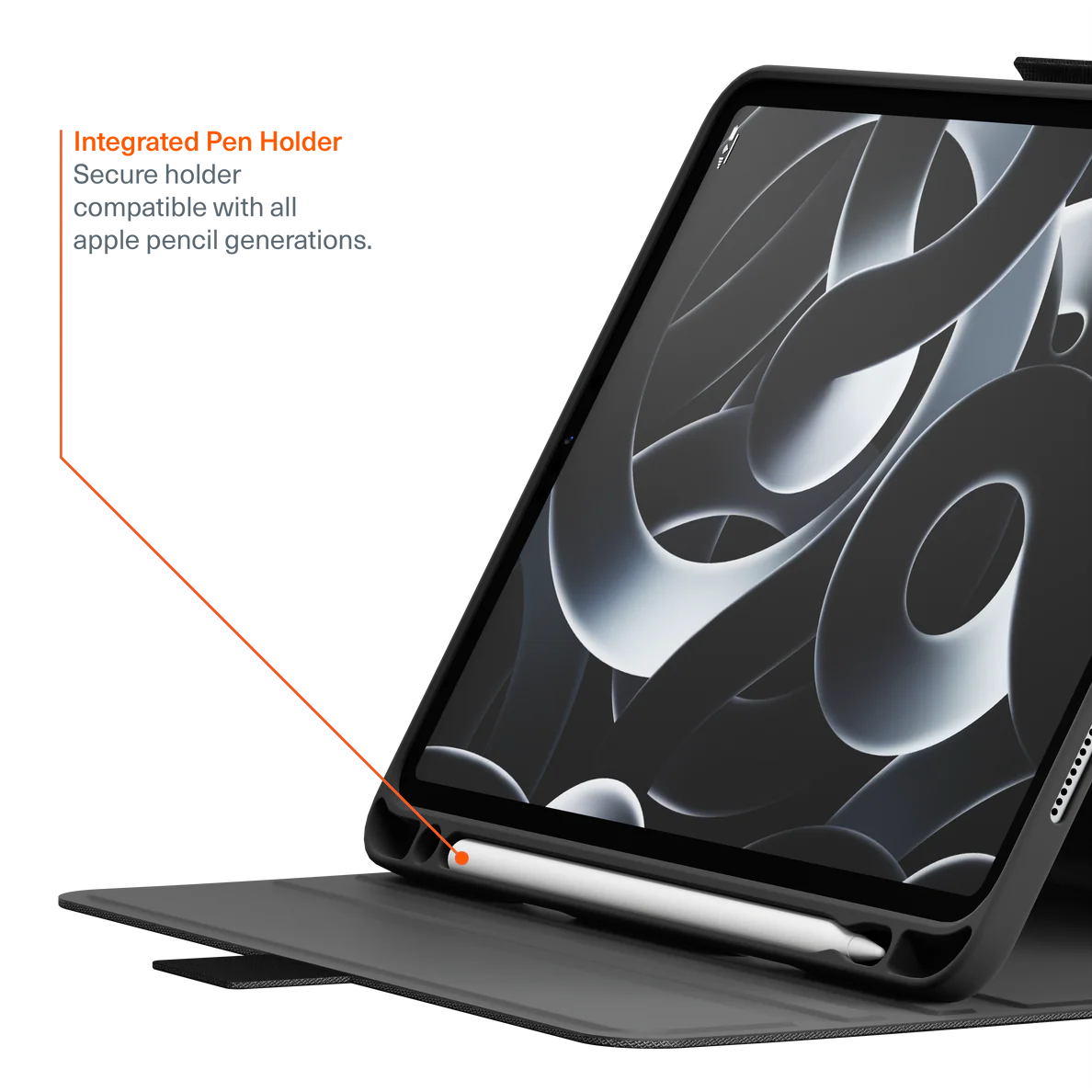 This wrap-around folio helps protect your iPad from everyday wear and tear while maintaining a slim, lightweight profile. It features a soft microfiber interior, built-in storage for your Apple Pencil, and can be folded into a stand with three adjustable viewing angles. Precision cut-outs provide easy access to all ports and buttons, while a dedicated opening supports magnetic Apple Pencil attachment and sleep/wake functionality.