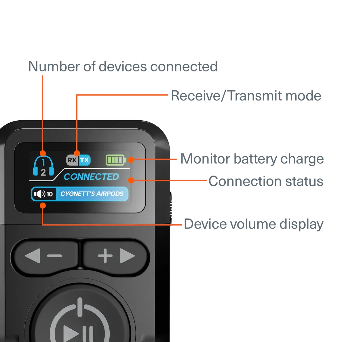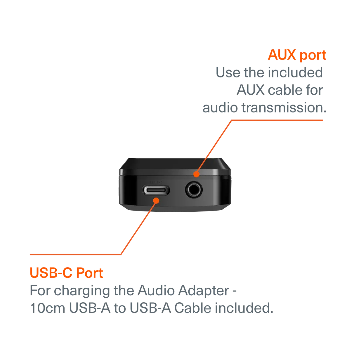 • USB-C Input: 5.0⎓0.5A (2.5W) AUX Input: 3.5mm to 3.5mm AUX Cable