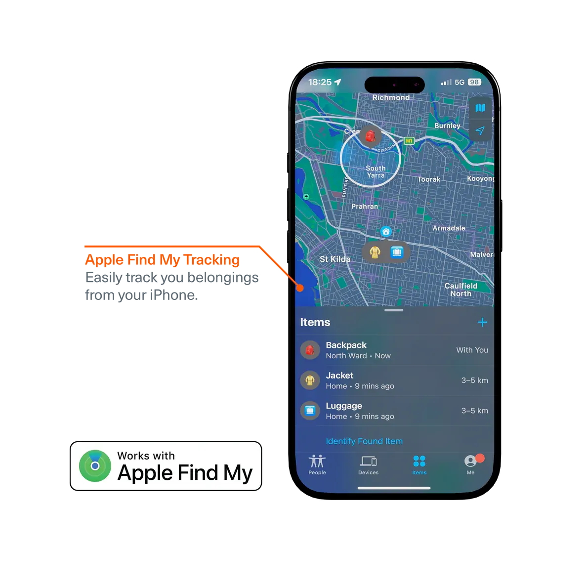 • TSA and Check-In Approved Bluetooth V5.3 / FindMy App Integration