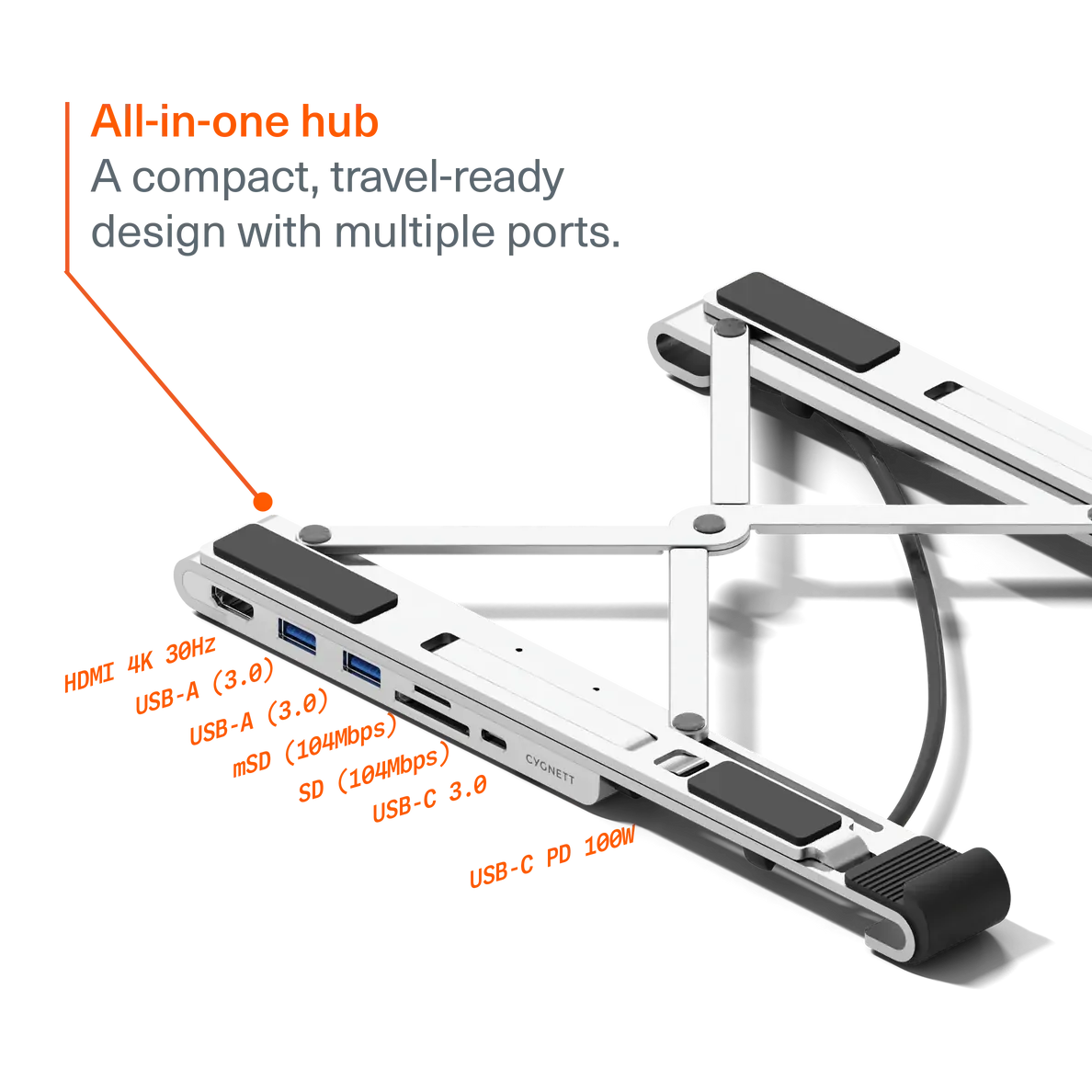 • Output: 1x HDMI 4K/30Hz, 2x USB-A 3.0 (5Gbps), 1x USB-C 3.0 (5Gbps), 1x SD (104Mbps), 1x mSD (104Mbps), 1x USB-C PD 100W
