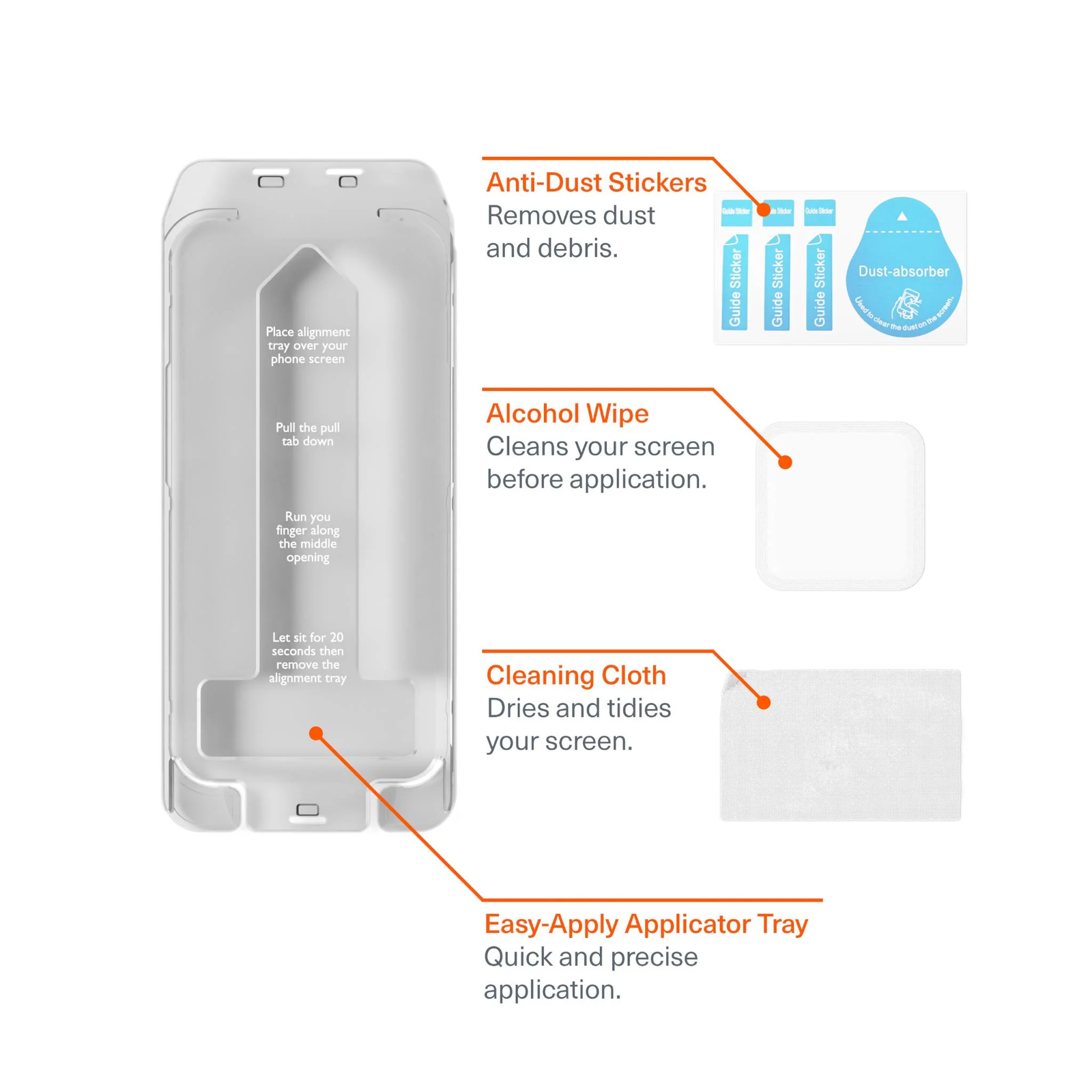 The OpticShield includes an easy-apply applicator to help make installation simple and clean. It is designed to assist with applying the screen protector while helping reduce air bubbles and fingerprints. Everything needed for installation is provided in the box.