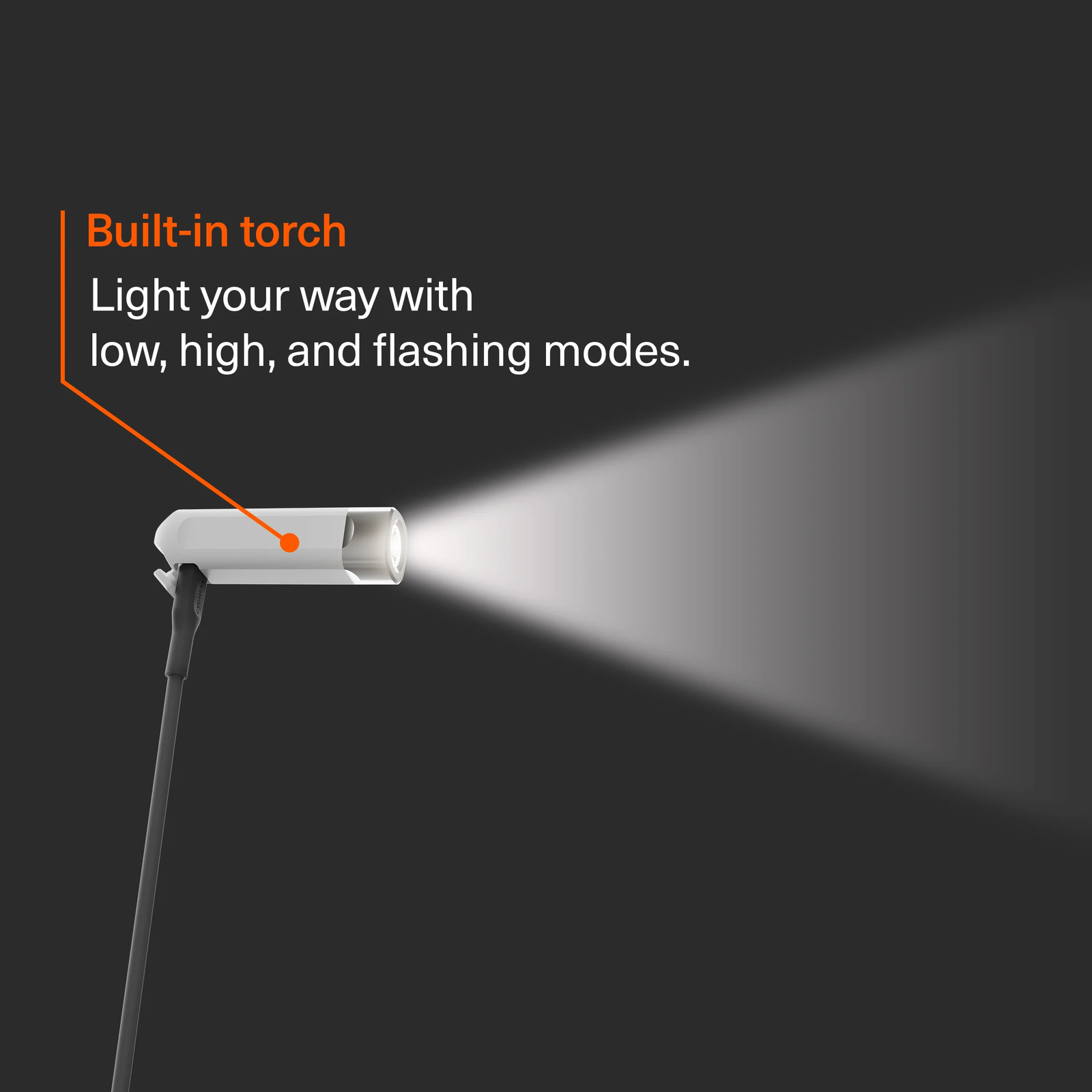 • Built-in torch: Light your way with the built-in torch, featuring three modes: low, high, and flashing.