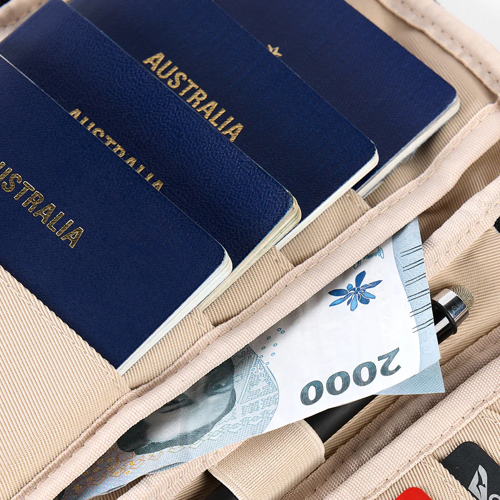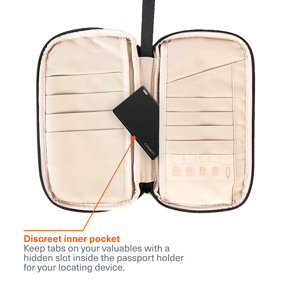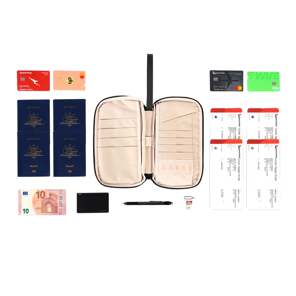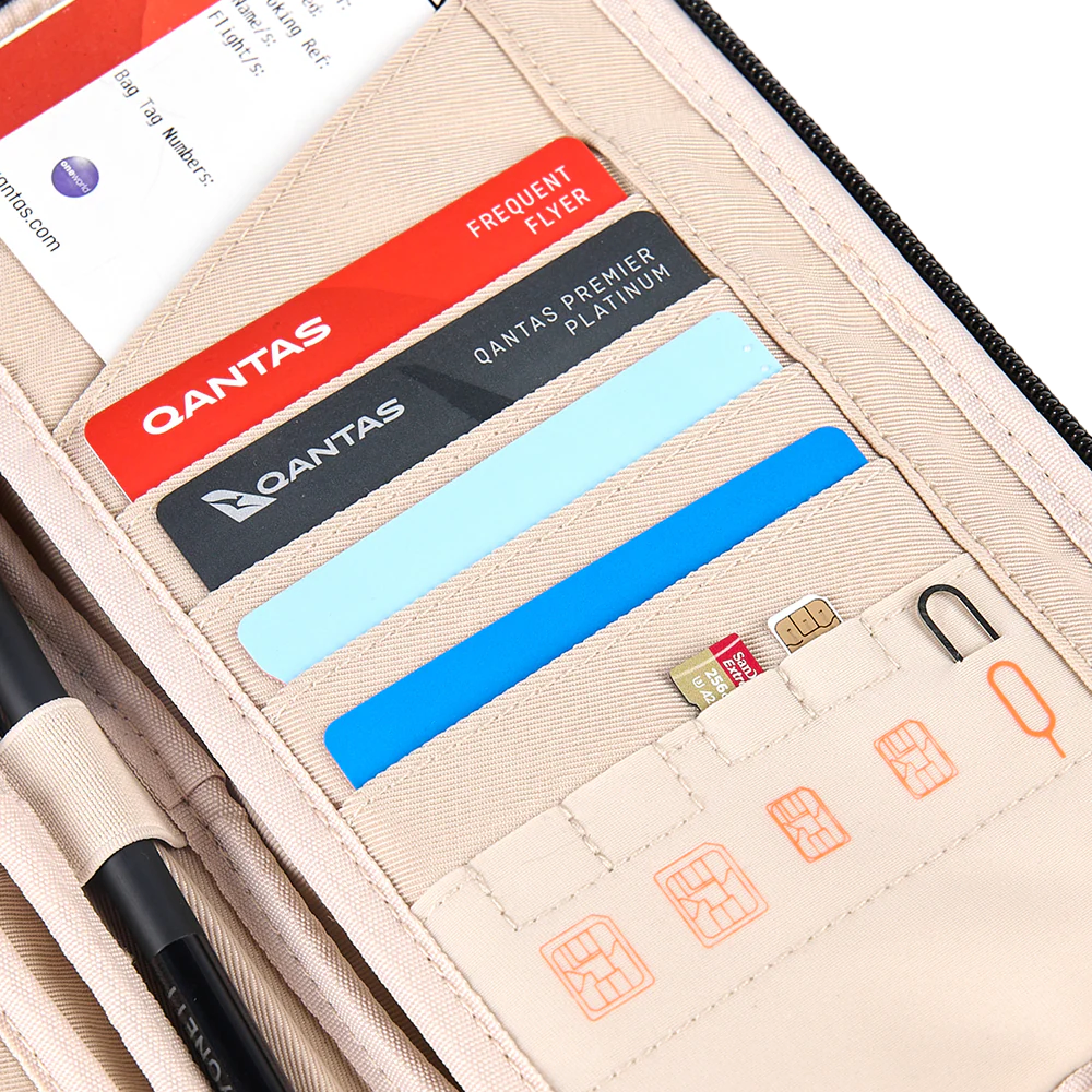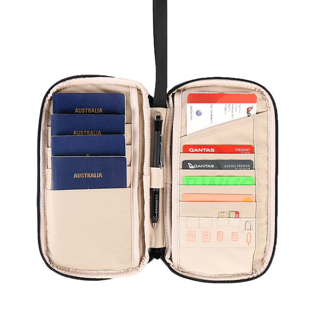 • Endless storage: Holds four passports, boarding passes, credit cards & more.