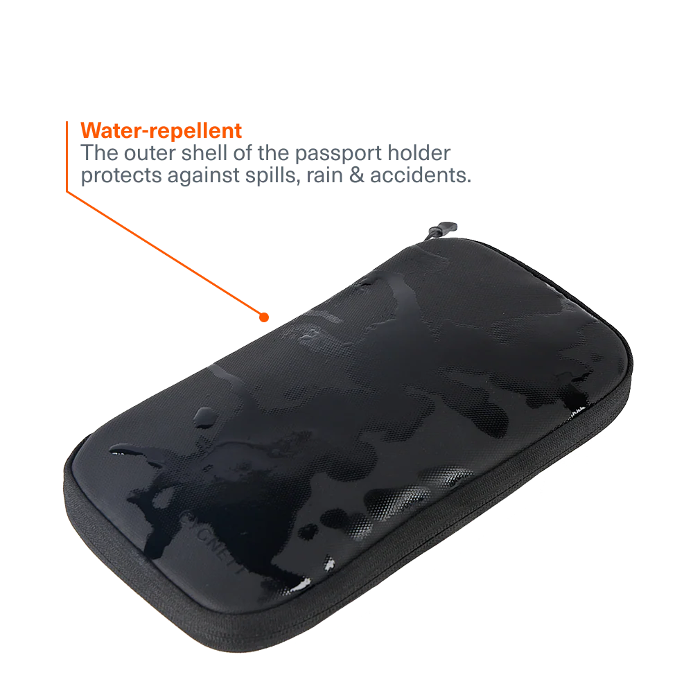 • Water-repellent: The outer shell of the passport holder protects against spills, rain & accidents.