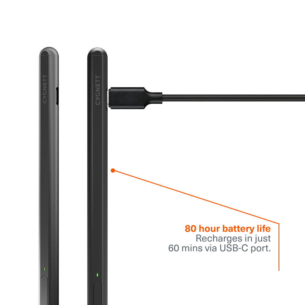 • Extended battery life & fast charge: Use your pen for up to 80 hours. When it’s time to recharge, go from 0–100% in just 60 minutes via USB-C.