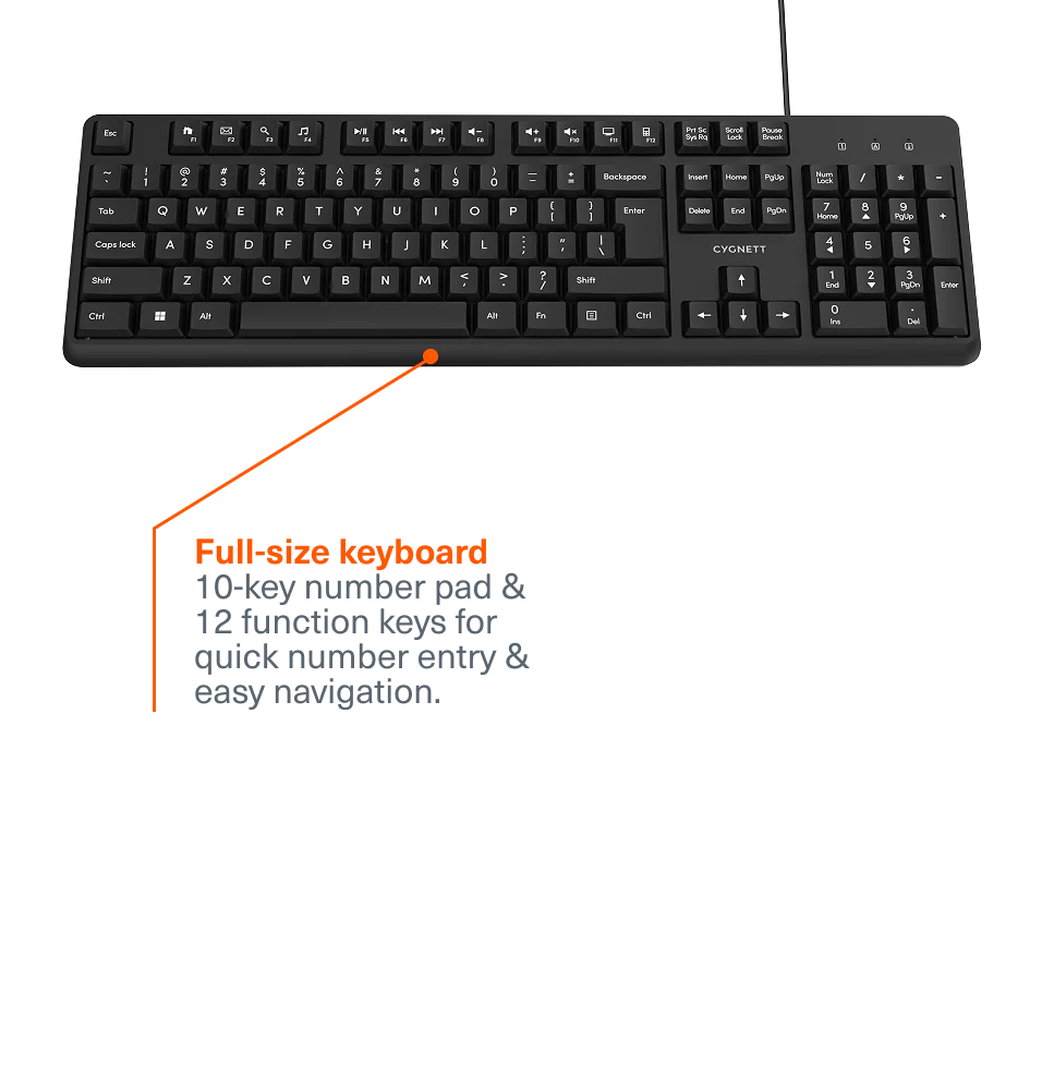• Full-size keyboard: With 10-key number pad & 12 function keys for quick number entry and easy navigation.