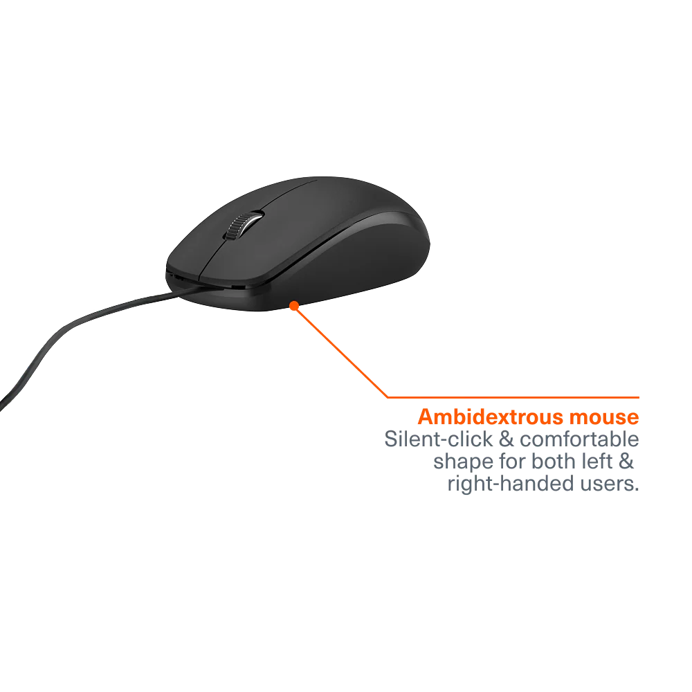 • Ambidextrous mouse: Offering a silent-click & comfortable shape for both left- and right-handed users.