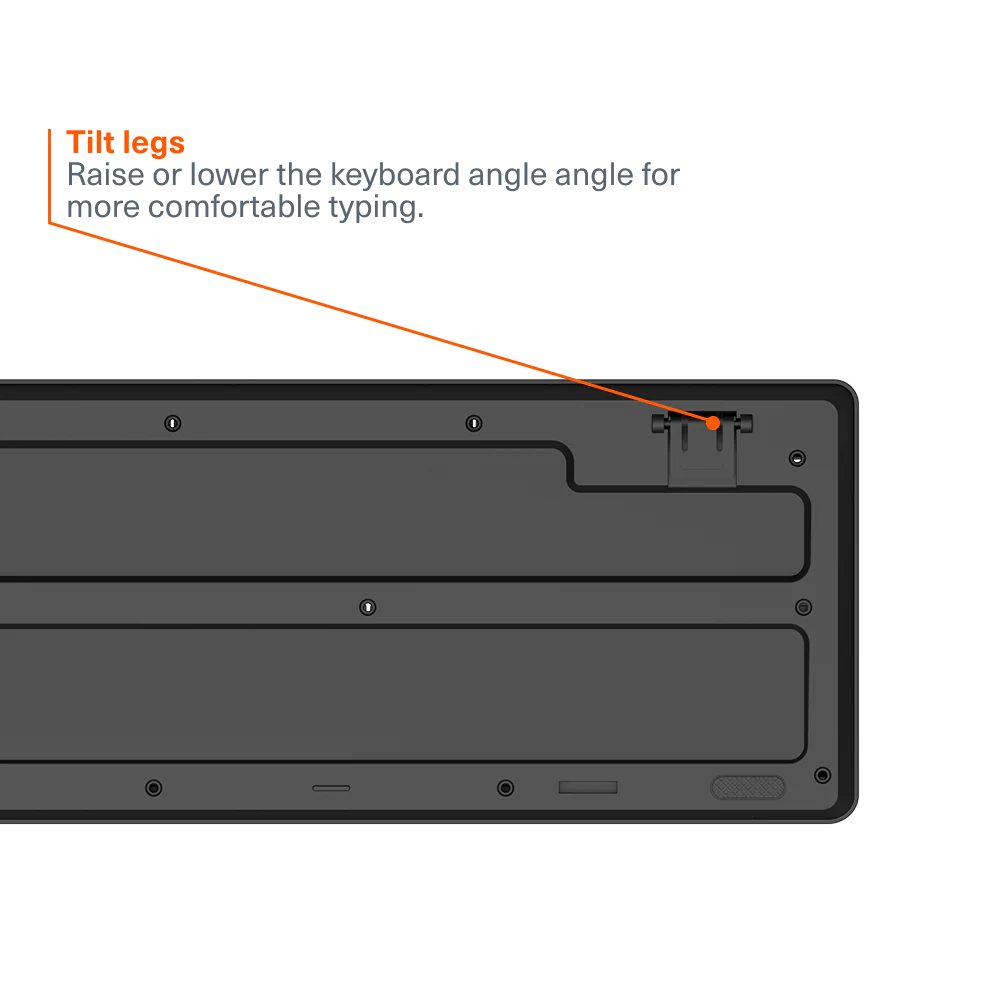 • Tilt legs: Raise or lower the keyboard angle to type in comfort for longer sessions.