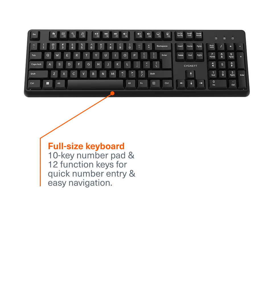 • Full-size keyboard: With 10-key number pad & 12 function keys for quick number entry and easy navigation.