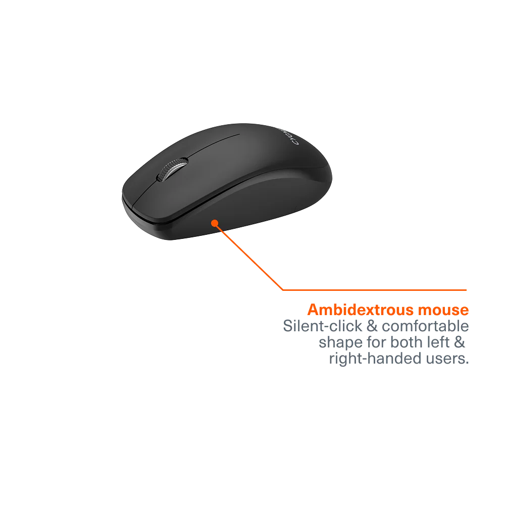 • Ambidextrous mouse: Offering a silent-click & comfortable shape for both left- and right-handed users.