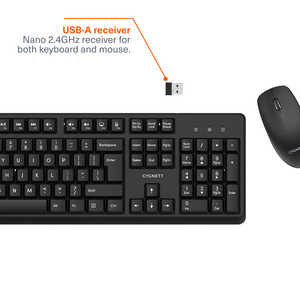 • USB-A receiver: Plug & play with nano 2.4GHz receiver for both keyboard and mouse.