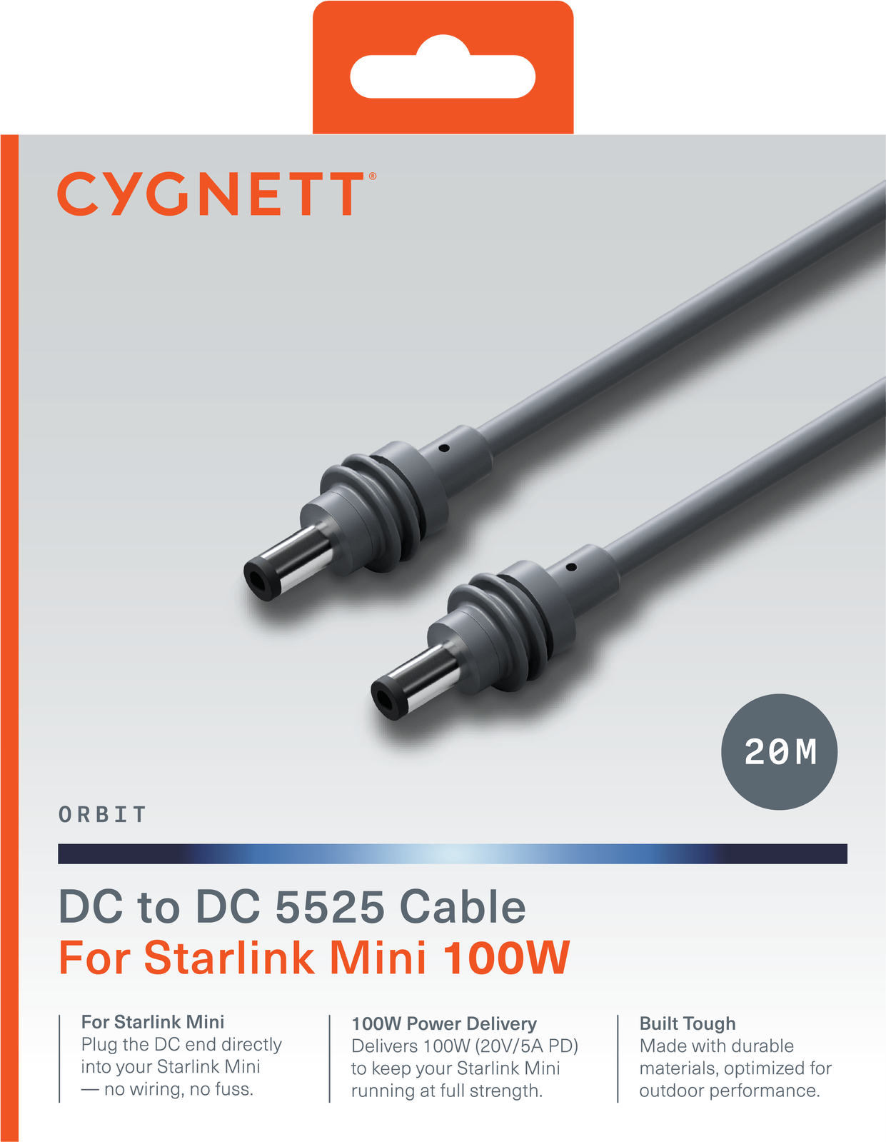 Orbit DC to DC 5525 20M Cable for Starlink Mini 100W, Warranty Card