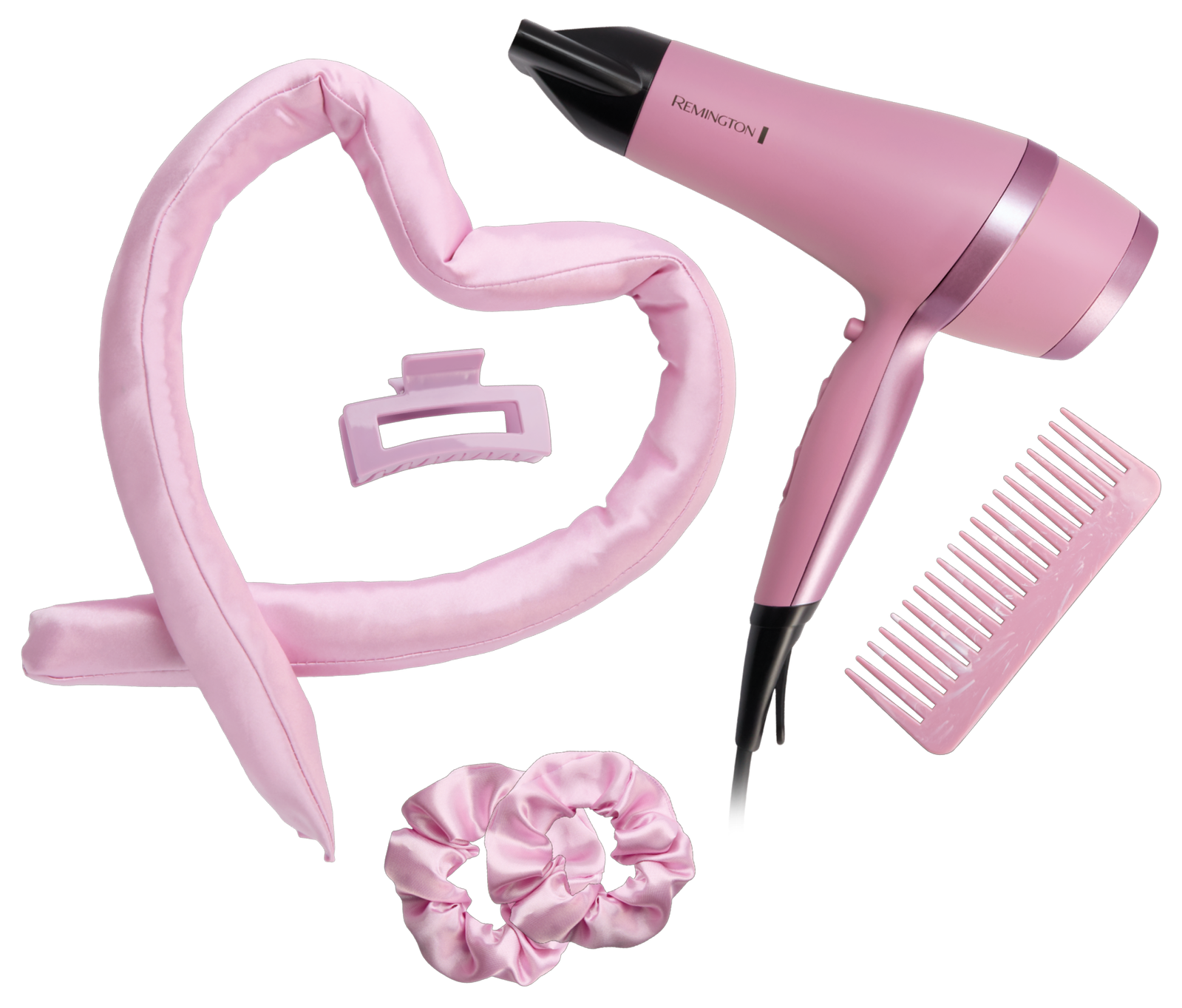 Includes Hair Dryer, Heatless Curler, Scrunchies, Claw Clip and Comb & Gift Bag