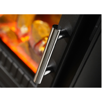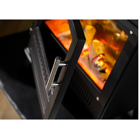 The Bari is a compact stove designed to fit in a standard fireplace or on a hearth. Finished in a traditional black cast iron effect, with a single opening door and large viewing window. The Flame effect can be used independently of the heat source, with the coal effect giving a unique, warming glow that can be enjoyed throughout the year.