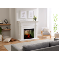 The Caden mantel is in traditional styling and will bring style and elegance to any room. This traditional fireplace utilises Revillusion Flame technology - A clear view through the lifelike flames, to a full concrete-surround firebox, captures the charm of a wood-burning fireplace. Quick set up in minutes and no expensive installation or venting required, allows easy movement between rooms.