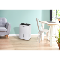 Convenient to move around with ease, removing 12L moisture in the air per day, improves air quality for your family and reduces the chance of mould growth. Dimplex dehumidifiers are great for people with allergies, respiratory ailments or asthma, to help you breathe better through improved air quality. Featuring a 1.5L tank capacity, tank level indicator, auto defrost, and filter wash reminder this unit is easy to maintain. The pre-set modes - continuous, living room and bedroom will create a set and forget comfort. Easy to move between rooms with castors and a carry handle.