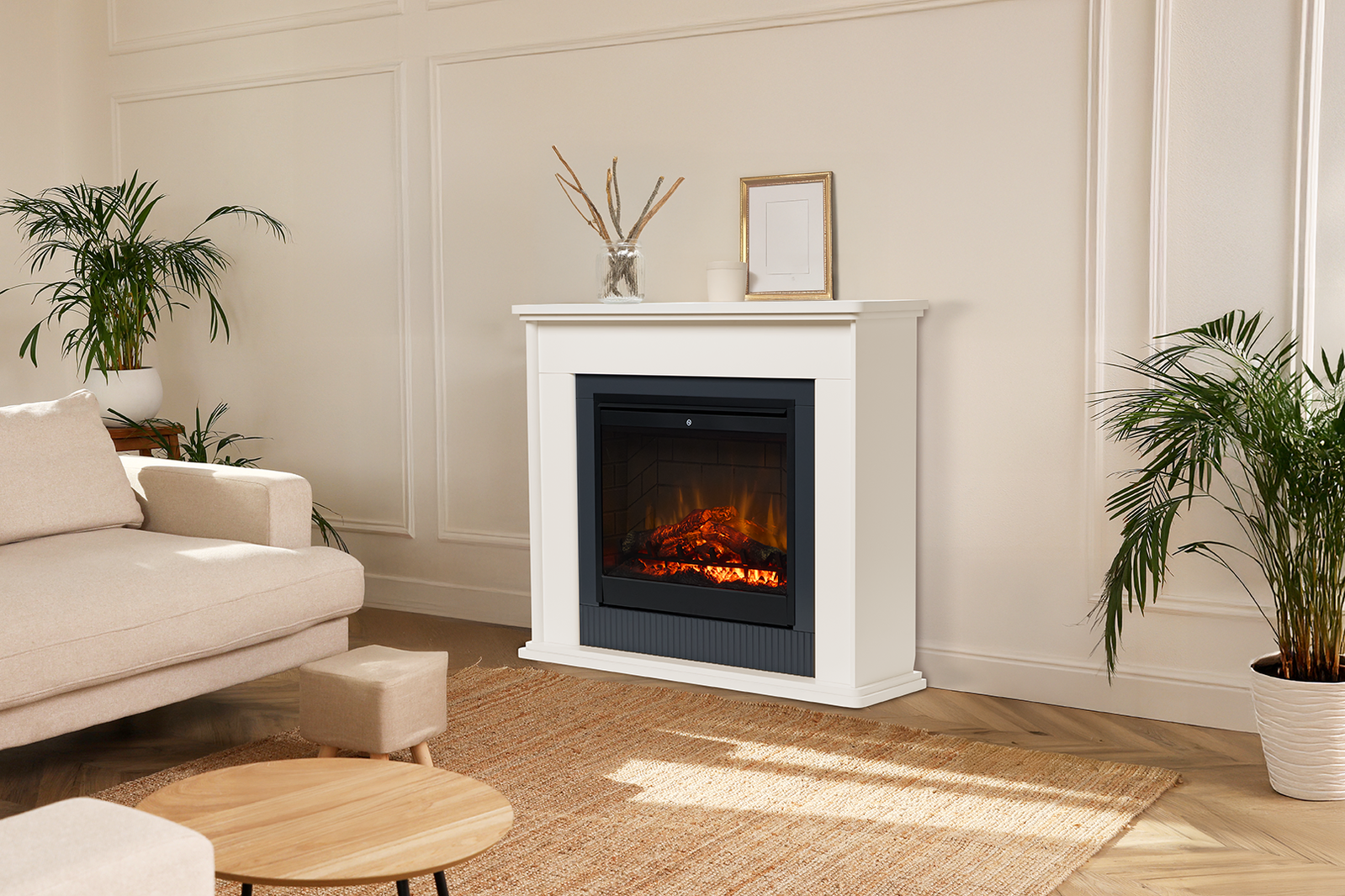 The Embassy mantel package is full of excellent features that will make it suitable for all kinds of settings. This contemporary fireplace uses a realistic log set and flame effects to create a very convincing result.