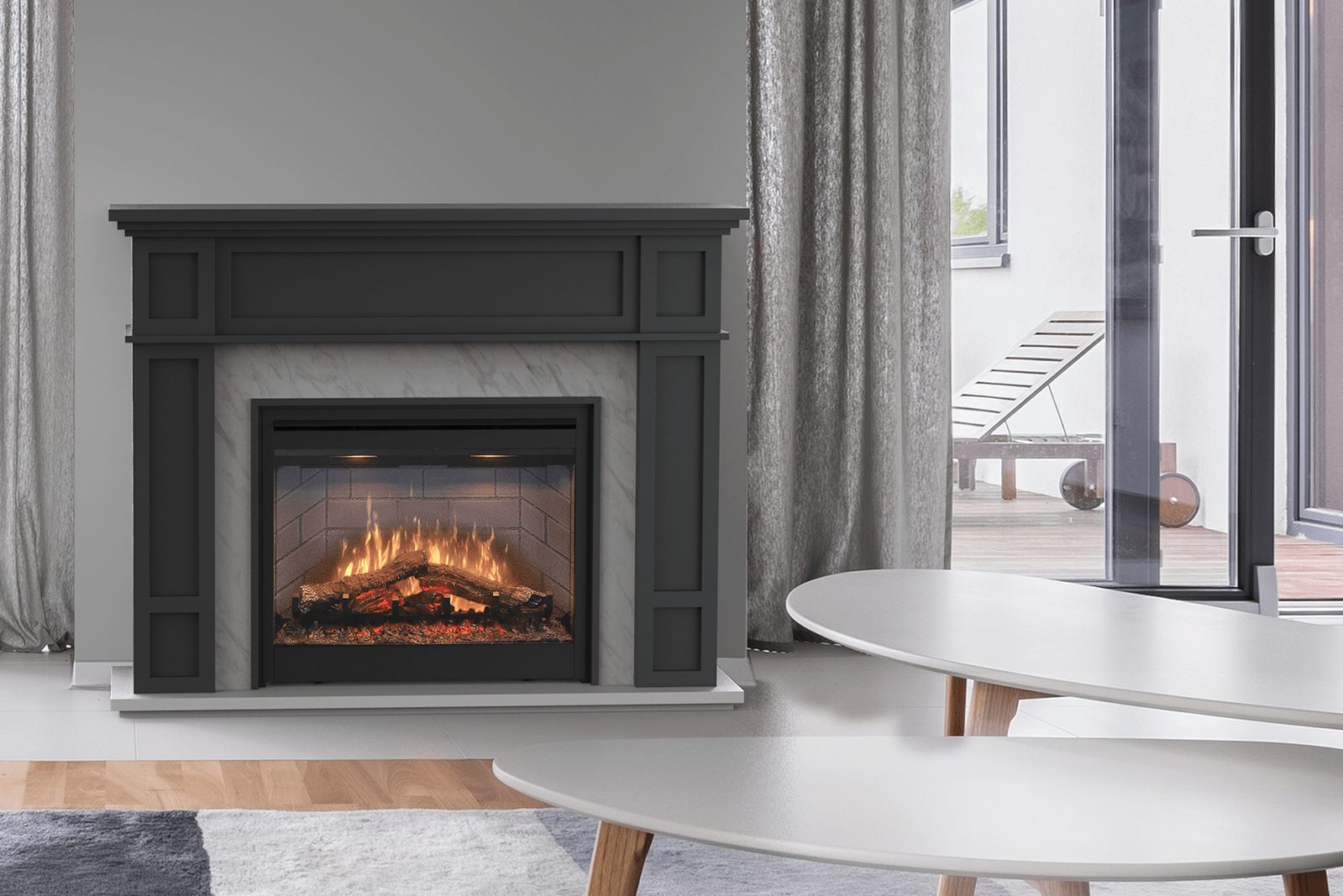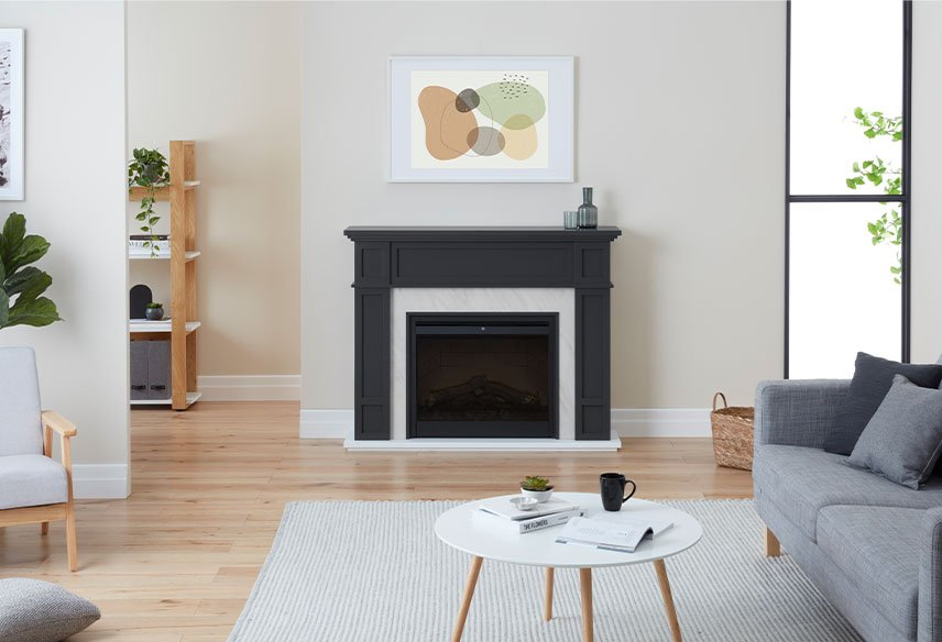 The Eltham fireplace suite is a beautiful blend of modern and traditional with contrasting grey and marble finishes, sure to elevate any home. Quick set up in minutes and no expensive installation or venting required, easily position in any room. The 26 inch firebox with LED Flame effect can be used independently of the heat source to create ambiance any time of the year.