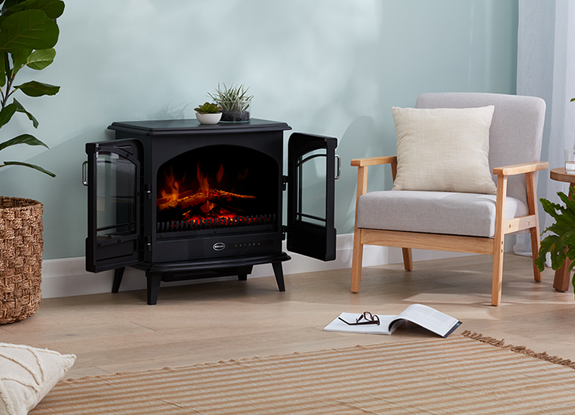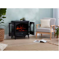 The Leckford Electric Stove has been designed to give the traditional appearance of a portable cast iron style stove. With opening double doors and the Optiflame effect to create realistic fireplace visuals.
